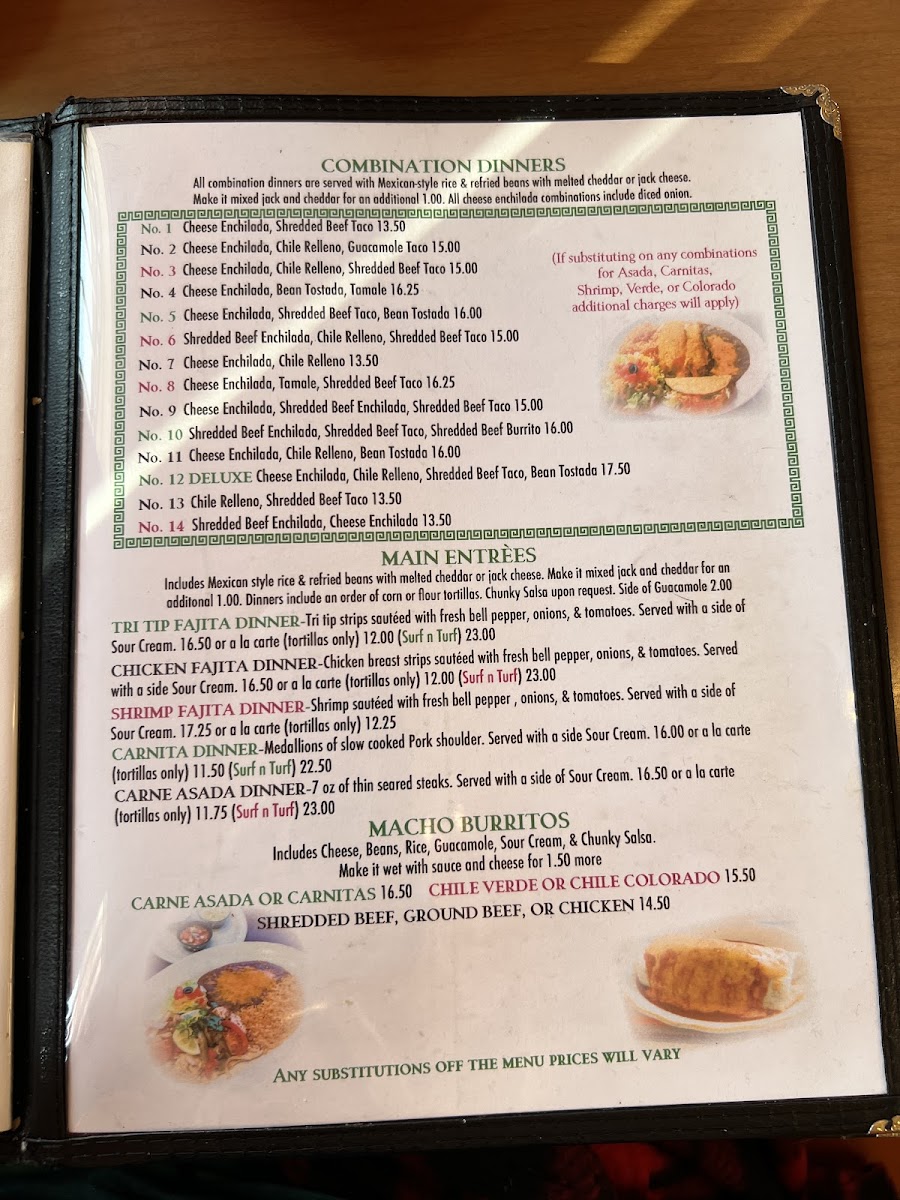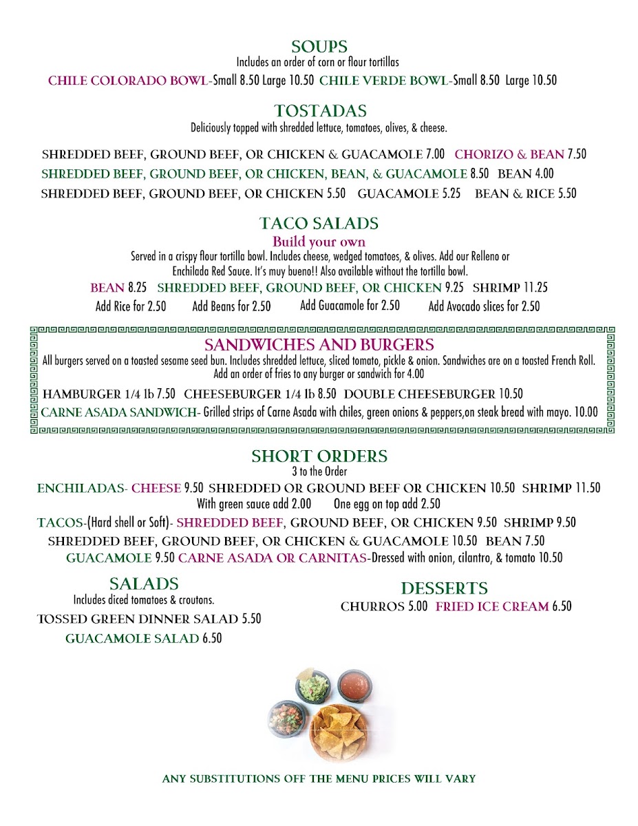 Cheese Enchilada, Chile Relleno, Bean Tostada